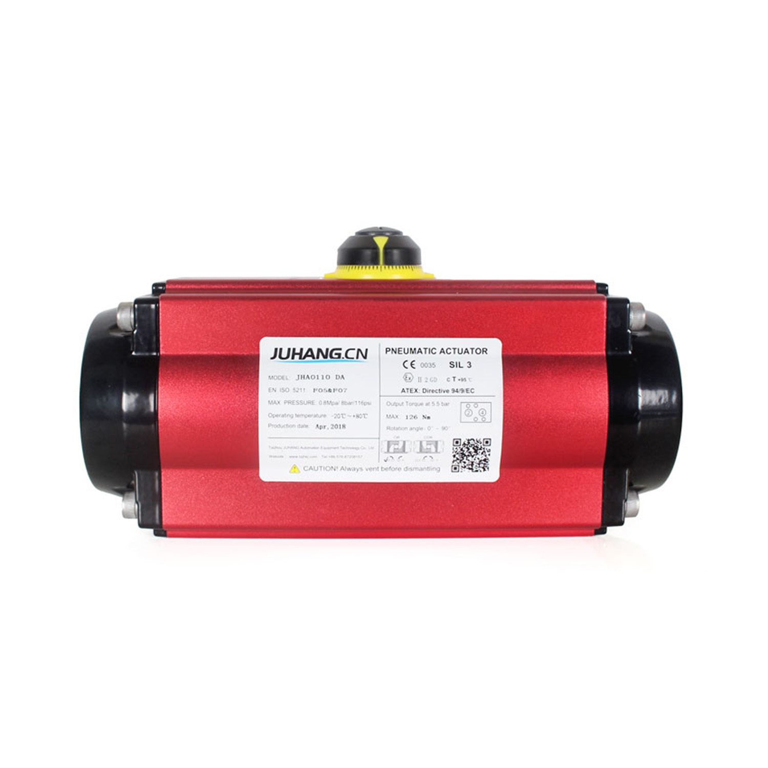 Тартпалар мен пиноза Пневматикалық актуатор Екі реттік актерлік jha0110da-да төмендегі сипаттамаларға ие: